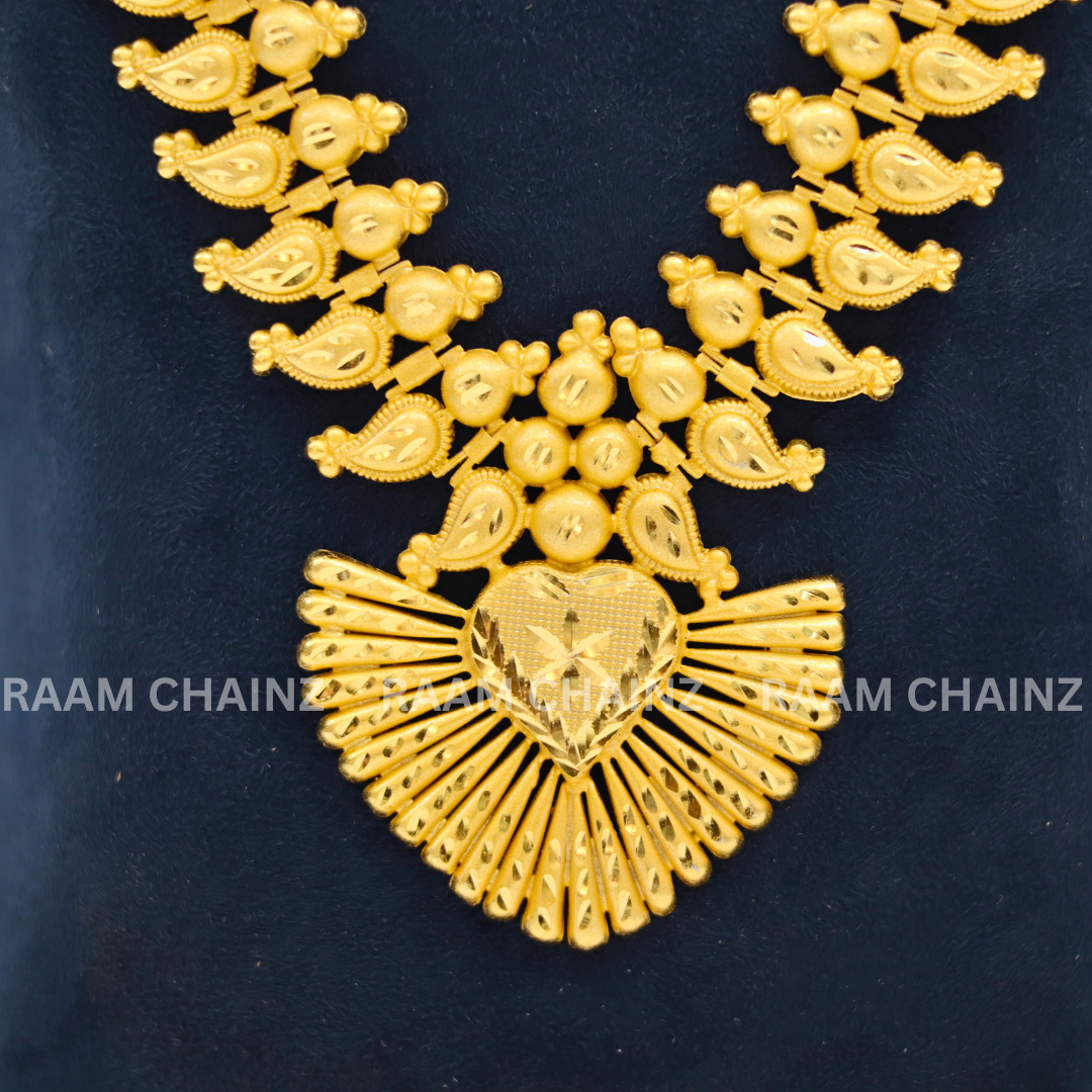 Turn heads with the regal charm of the Kerala Forming Haram Combo Set 2-Line (Mango Crape) a graceful celebration of tradition and intricate design. Inspired by the iconic mango (paisley) motifs of South Indian temple jewelry, this haram set brings a perfect blend of cultural elegance and modern craftsmanship to your festive wardrobe. Ideal for weddings, traditional events, or festive occasions, it’s a must-have for every woman who cherishes heritage in her style.