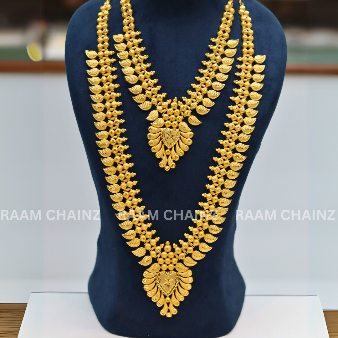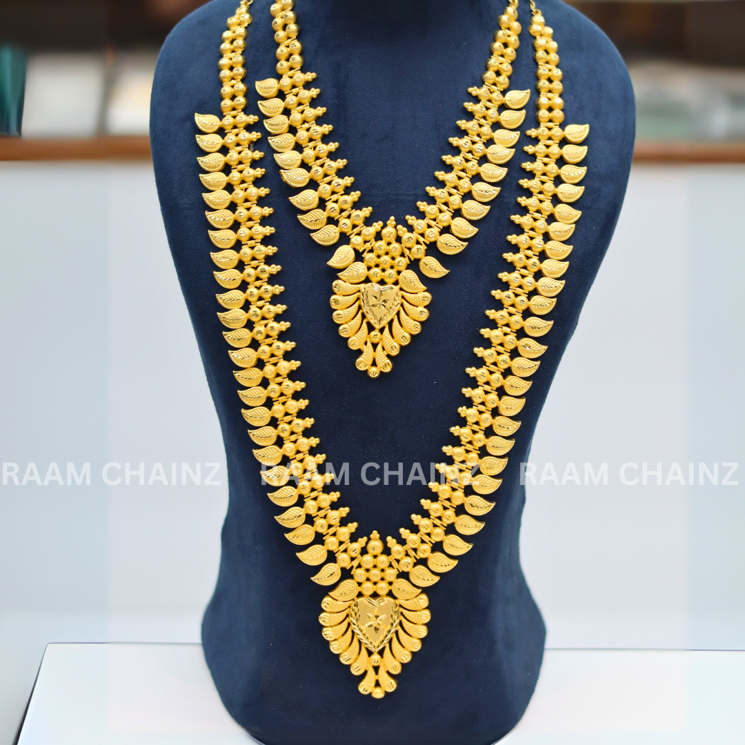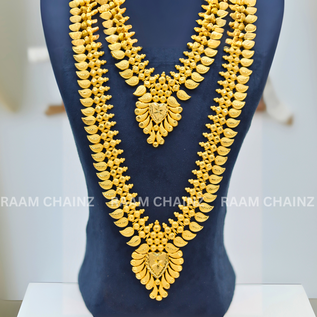 Add a touch of divine elegance to your ethnic look with the Kerala Forming Haram Combo Set 2Line (Mango Leaf). Shop now and let every occasion become a celebration of your unique style and tradition!
